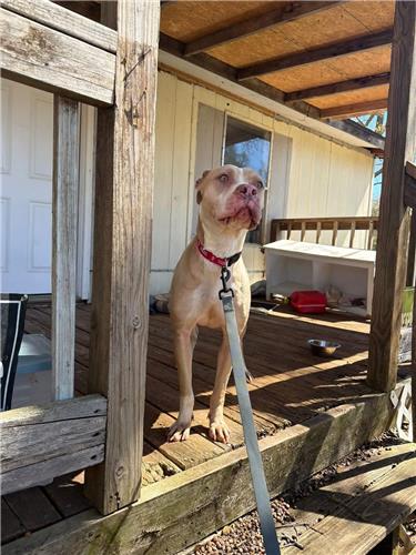 Additional Comments : Red nosed pit. Female. Knows tricks, checked for microchip and didn’t find anything. Been out in the wild for a while. We can’t keep her, we have other animals in the home.
