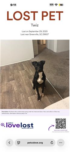 Date the animal was lost : 9/29/2025